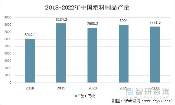 塑料也是家具的主要原材料之一,因其材质色彩鲜艳、轻便小巧、保养方便、价格低廉的优势,塑料家具受到广大消费者喜爱。2018-2022年我国塑料制品产品整体上呈波动上升的趋势,由于疫情的冲击,生产企业开工受到影响,加上下业的需求减少,国际油价的上涨等一系列因素导致塑料产量处于波动态势。