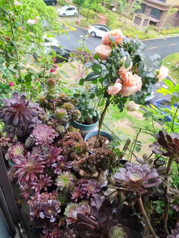 阳台外侧种花,浇花的时候不可避免往楼下滴水;月季又是病虫害较多的植物,需要时不时喷药,是著名的“药罐子”。胡女士特别感谢楼下邻居的理解,“他们都很理解我的爱好,说浇水的时候往下滴点水没关系的。”