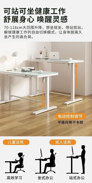 第四,达宝利DZ200智能升降学习桌使用高品质钢化玻璃轻奢桌板,不易刮花,易清洁。避免了传统学习桌实木桌面不易打理的弊端。
