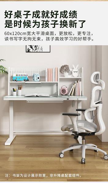 第三,达宝利DZ200智能升降学习桌具有60X120cm宽大平滑的桌面,无任何固定分区,学生读书写字无拘无束,可根据个人需求自由布置桌面功能区。