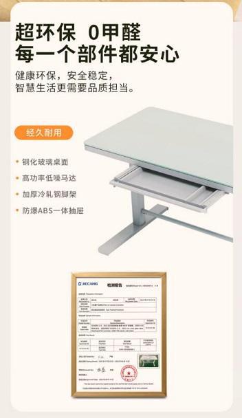 第六,达宝利DZ200智能升降学习桌的桌面使用钢化玻璃,不存在胶合板等木材质,因此0甲醛。DZ200每一个部件都让家长和学生安心。