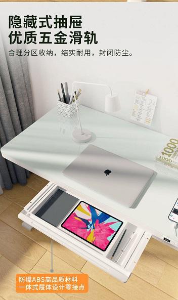 第五,达宝利DZ200智能升降学习桌在桌板中内置隐藏式抽屉,不占空间,合理分区收纳,结实耐用,封装防尘。适合学生放置学习用品。