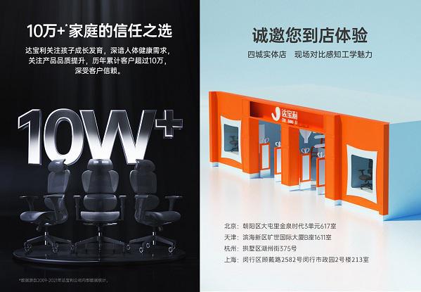 达宝利关注孩子成长发育,深谙人体健康需求,关注产品品质提升,历年累计客户超过10万,深受客户信赖。2023年,达宝利学习椅系列获得学习椅十大品牌的殊荣。