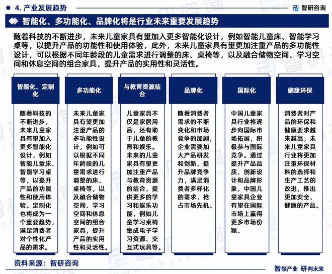 随着科技的不断进步,未来儿童家具有望加入更多智能化设计,例如智能儿童床、智能学习桌等,以提升产品的功能性和使用体验,此外,未来儿童家具有望更加注重产品的多功能性设计,可以根据不同年龄段的儿童需求进行调整的床、桌椅等,以及融合储物空间、学习空间和休息空间的组合家具,提升产品的实用性和灵活性。