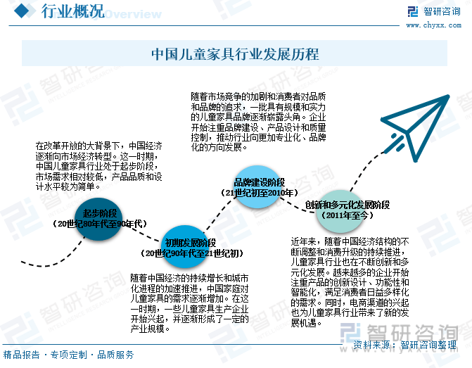 中国儿童家具行业经历了从起步阶段到品牌建设期再到创新和多元化的发展历程,行业发展水平不断提升,市场竞争日益激烈,随着消费者对产品安全和环保的关注度不断提升,儿童家具行业也在加强相关标准和监管,越来越多的企业开始关注原材料的选择和生产工艺的改进,致力于提供更加安全、健康的儿童家具产品,推动行业朝beat365官网着更加健康、安全、环保的方向发展。