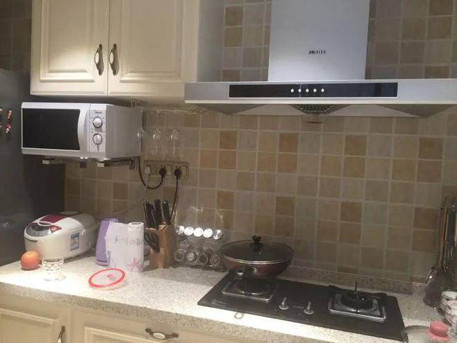 在吊柜下方巧妙安装支架,将微波炉稳固悬挂,既美观又节省了大量空间。这个巧妙的点子,正是出自贤惠的妻子之手,她的智慧与创意为家居生活增添了不少便利与温馨。