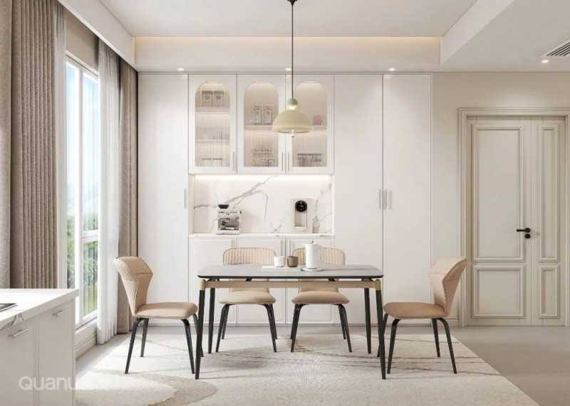 餐厅作为全屋最具“生活气息”的空间之一,若只是餐桌与餐椅搭配,难免会显单调,甚至还有点浪费空间,而餐边柜存在就很好地规避了这两个问题。结合实用功能,搭配整屋风格设计餐边柜,装饰性强,不仅能营造舒适和谐的用餐环境,还能充分体现空间格调与屋主品味。