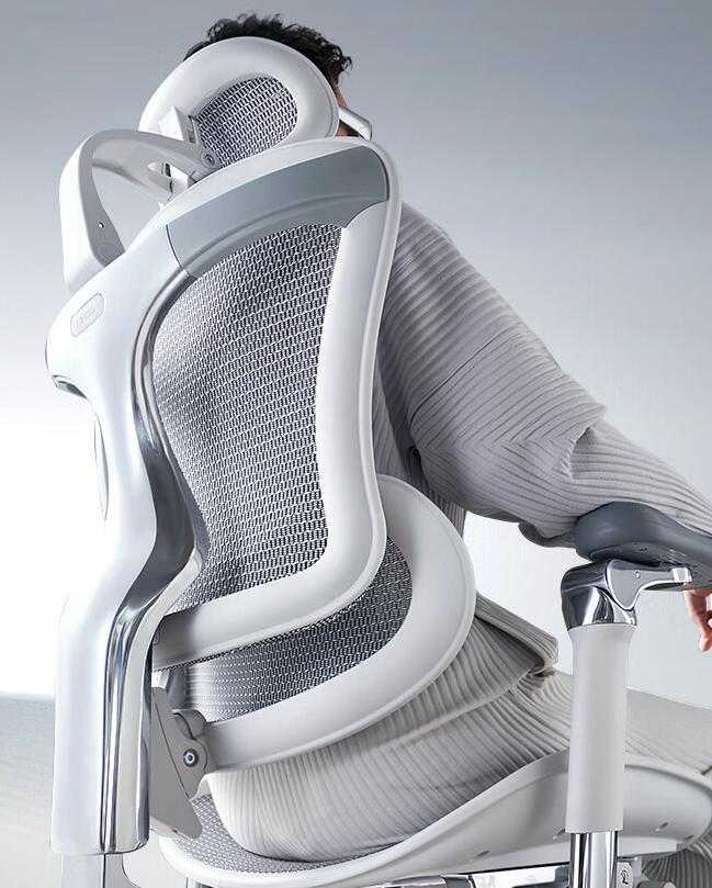 而在底盘之外,扶手和腰背系统某种程度上与底盘是相辅相成的关系,就像前面提到的西昊多米诺系统,就是一个腰靠与底盘联动结构。可以根据人体的姿势变化自动追踪腰部位置,在不同姿势下持续提供支撑力,确保人体的压力被分散到椅身和网布上。
