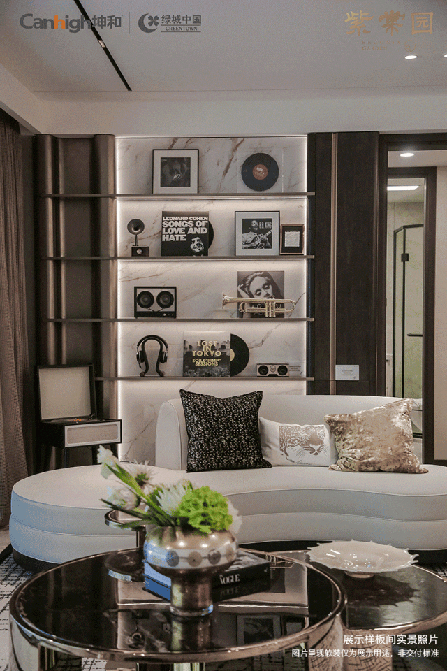 说实话很久没看到客厅背景墙不贴“非交付标准”了,在紫棠园,客厅背景墙岩板、金属边框,只是N多交付标准之一。